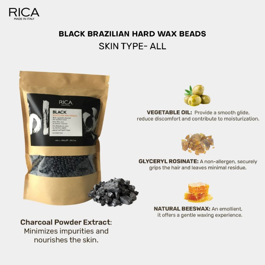 Rica Black Brazilian Beads Wax is a strip-less wax for even the most sensitive skin. It contains Vegetable charcaol that is extremely soft on the skin. Rica Beads Wax are Soft, Gentle but Strong and Suitable for even the most sensitive skin.